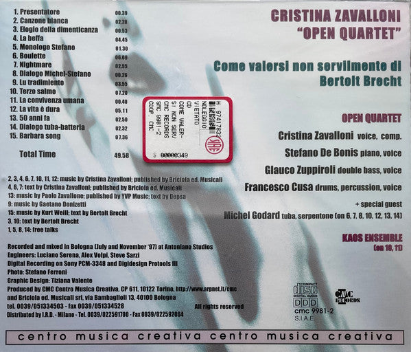 ARTIST: Cristina Zavalloni Open Quartet