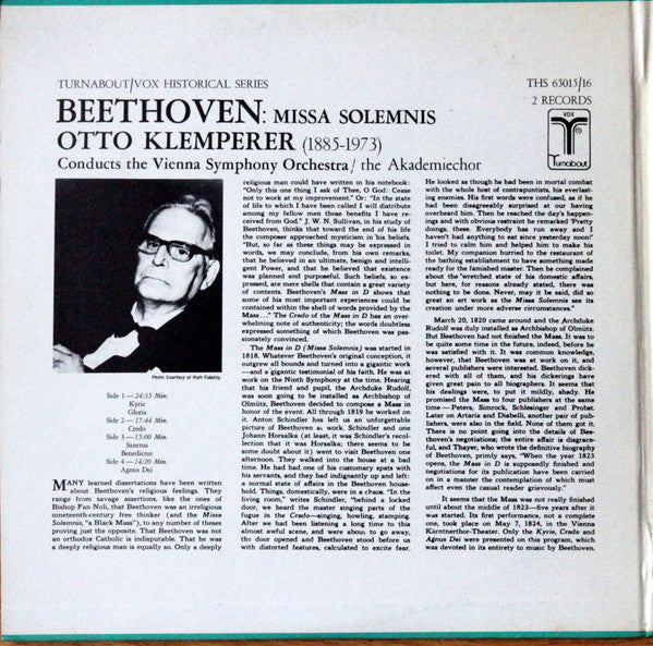 Otto Klemperer Conducts Ludwig van Beethoven, Wiener Symphoniker And Der Wiener Akademiechor