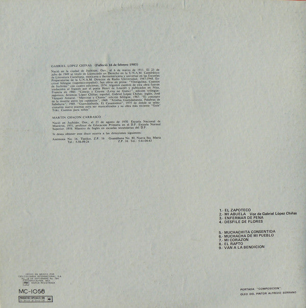 Canciones Zapotecas Del Istmo. Oaxaca