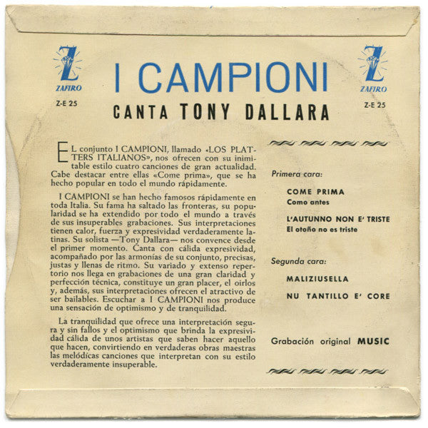 ARTIST: I Campioni Canta Tony Dallara