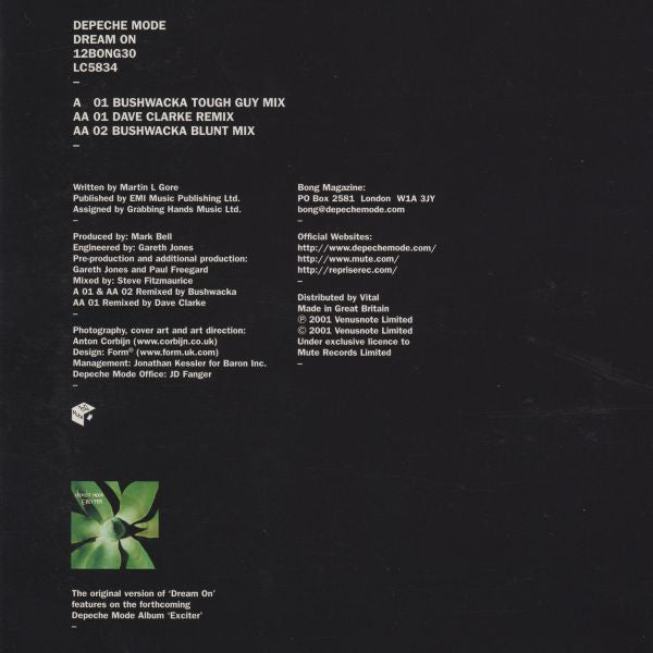 | A 01 | Dream On (Bushwacka Tough Guy Mix) |