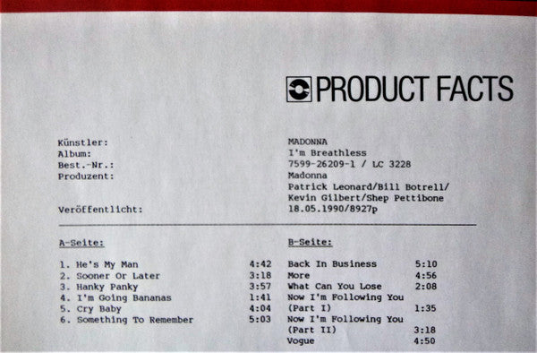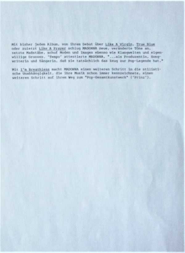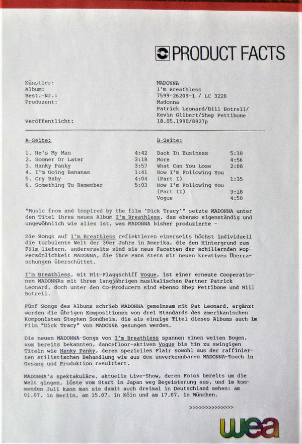 TITLE: I'm Breathless (Music From And Inspired By The Film Dick Tracy)