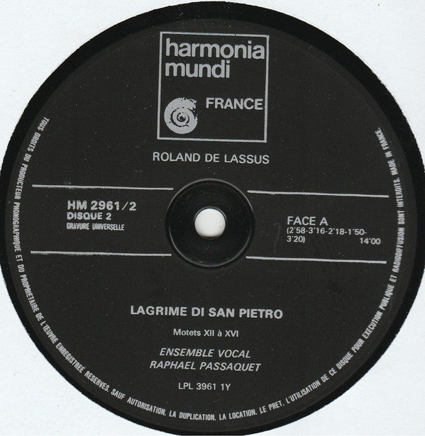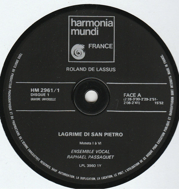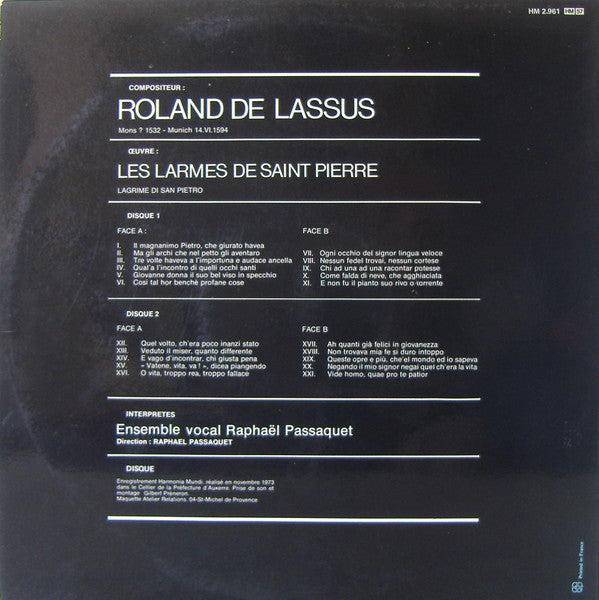 ARTIST: Roland De Lassus / Ensemble Vocal Raphaël Passaquet