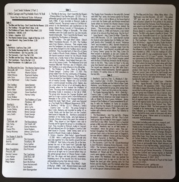 TITLE: Lost Souls Volume 1 Part 1 (1960s Garage And Psychedelic Rock 'N' Roll From The Un-Natural State: Arkansas)