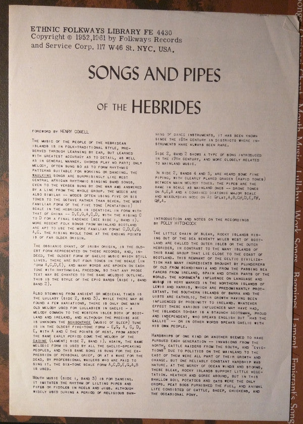 TITLE: Songs And Pipes Of The Hebrides