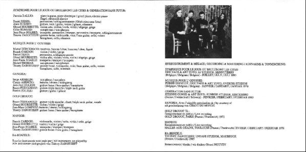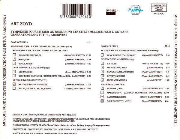 TITLE: Symphonie Pour Le Jour Ou Bruleront Les Cites / Musique Pour L'Odyssee / Generation Sans Futur / Archives I